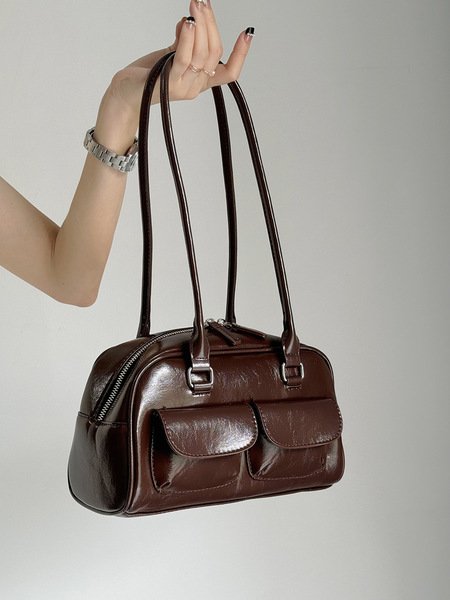 South Korea New Bowling Bag Handbag Niche Underarm Retro Large Capacity Small Pocket Design Bag for Women